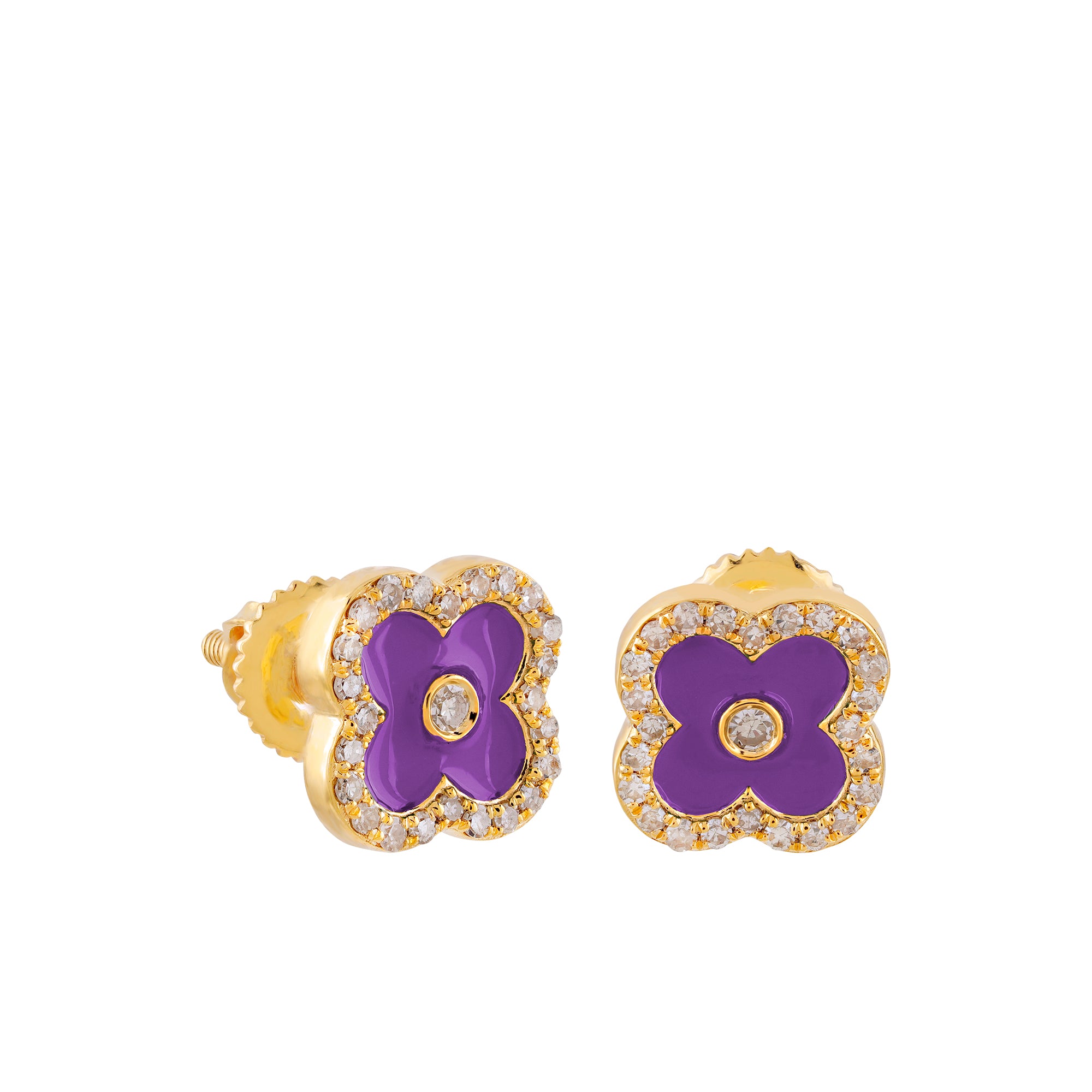 Crafted in yellow gold, these stud earrings showcase a total diamond weight of 0.14 carats, featuring round-cut diamonds that catch the light beautifully. The enamel detailing adds a subtle contrast, enhancing the refined appearance. Designed for both everyday wear and special occasions, these earrings offer a balanced blend of durability, sophistication, and expert artistry.
